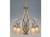 CH35955A/C Finish: Antique Brass Features: -Five light chandelier. -Mont Blanc Collection. -Available in:. -Antique brass finish. -Aged walnut finish. -Aztec bronze finish. -Satin nickel finish. -Available with:. -Cognac crackle glass. -Waikiki sand glass. -Brushed cognac glass. -Frosted opal glass. Specifications: -Accommodates (5) 100 W medium base bulb (not included). -Overall dimensions: 28.5'' H x 25'' W x 25'' D..../ Mont Blanc Chandelier Finish: Antique Brass / Brass Chandelier