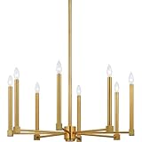 This large candle chandelier is part of Illuminations by Laurie Smith, a dynamic collection designed exclusively for Quoizel. Smith's "modern classic" style offers refined beauty and vibrancy for any space. This fine chandelier has a striking presence, and provides a distinctive modern accent to your home. The unadorned look is inspired by works from the mid-century, yet is versatile enough to be at home with many styles of decor. The pureness of form is enriched by superior craftsmanship and a gleaming finish..../ Quoizel LSV5008NR 8-Light Solid Brass Shadeless Vintage Chandelier from Illuminations by Laurie Smith Collection, Natural Brass / Brass Chandelier